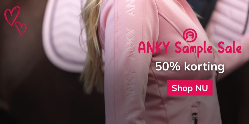 Tijdens de Anky Sample Sale scoor je de gaafste items met maar liefst 50% korting: - Ruiterartikelen in maat S / M - Paardenspullen in maat M / L / Full