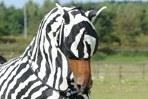 Bij Bucas zijn ook enkele maskers en vliegendekens en in een zebra print verkrijgbaar. Uit onderzoek is gebleken dat insecten gedesoriënteerd raken van zebraprint. Dit komt doordat insecten kijken door middel van infrarood. Hierbij is de kleur zwart warm en de kleur wit koud. Door het golvende patroon kunnen insecten niet meer onderscheiden of het paard warm of koud is. Zij zullen een andere warme plek zoeken om neer te strijken. Door het dragen van een vliegenmasker en een deken met zebraprint zal het paard 75% minder last ervaren van insecten ten opzichte van het dragen van een regulier vliegenmasker en vliegendeken.
