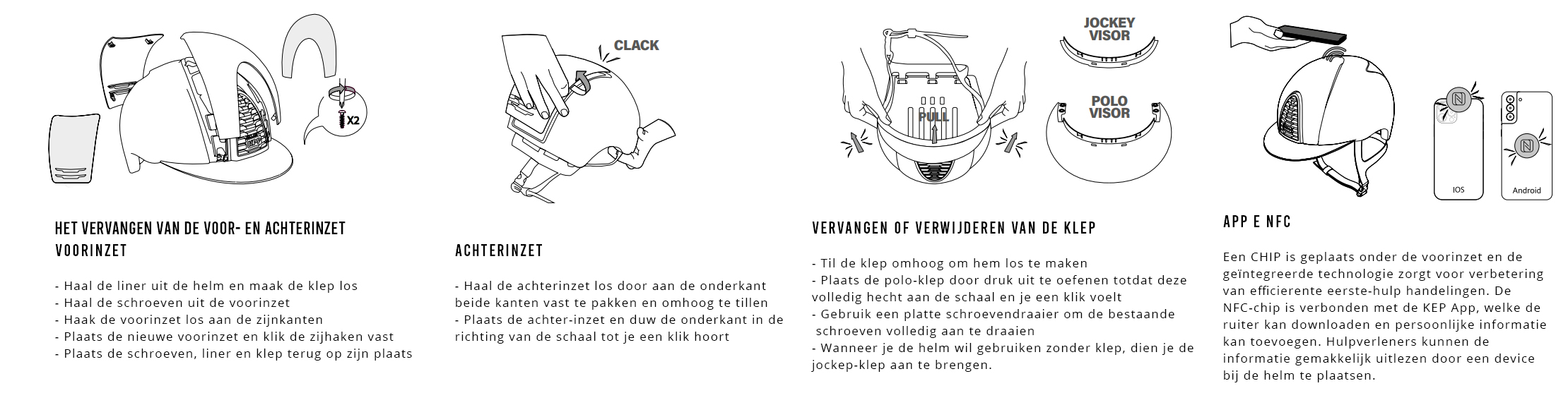 - In de voorinzet van het Cromo 2.0 model van KEP Italia is een NFC-chip geplaatst. Door middel van de KEP Italia app kun je persoonlijke informatie toevoegen aan deze chip, welke relevant kan zijn voor hulpverleners wanneer je ten val komt. Wanneer zij een mobiel apparaat bij jouw cap houden, kunnen zij de chip uitlezen. Hierdoor kunnen zij gerichtere hulp verlenen, en zien ze meteen gegevens zoals je naam, adres, noodcontacten, bloedgroep, allergieën, etc.