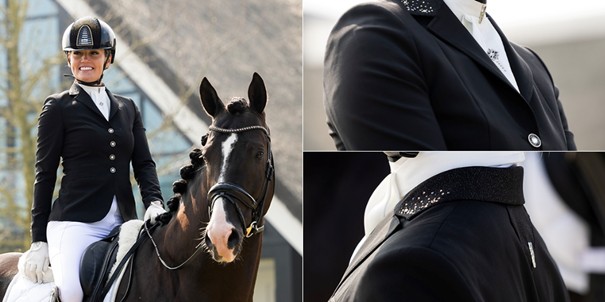 Vanaf nu kun je bij Drunens Ruiterhuis jouw JuulC wedstrijdjasje laten customizen. Kies eerst de kleur en stijl die bij jou passen, van chique tone-on-tone in navy of zwart tot opvallende accenten in roségoud, oranje of roze. Daarna kies je jouw favoriete Swarovski design, waarmee jouw jasje helemaal naar wens wordt afgewerkt.