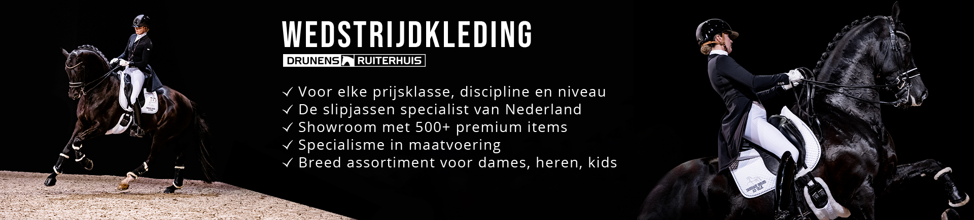 Opzoek naar een opvallende wedstrijdjas? Zoek dan niet verder! Bij Drunens Ruiterhuis heb jij altijd een ruime keuze uit fantastische wedstrijdjasjes in diverse maten, kleuren, merken en pasvormen! Op een dressuurwedstrijd of springwedstrijd wil jij natuurlijk extra opvallen. Daarom bieden wij de beste wedstrijdjassen voor jou in onze winkel en online in onze webshop.