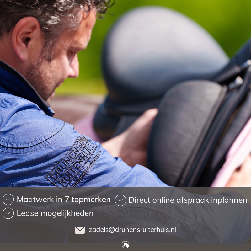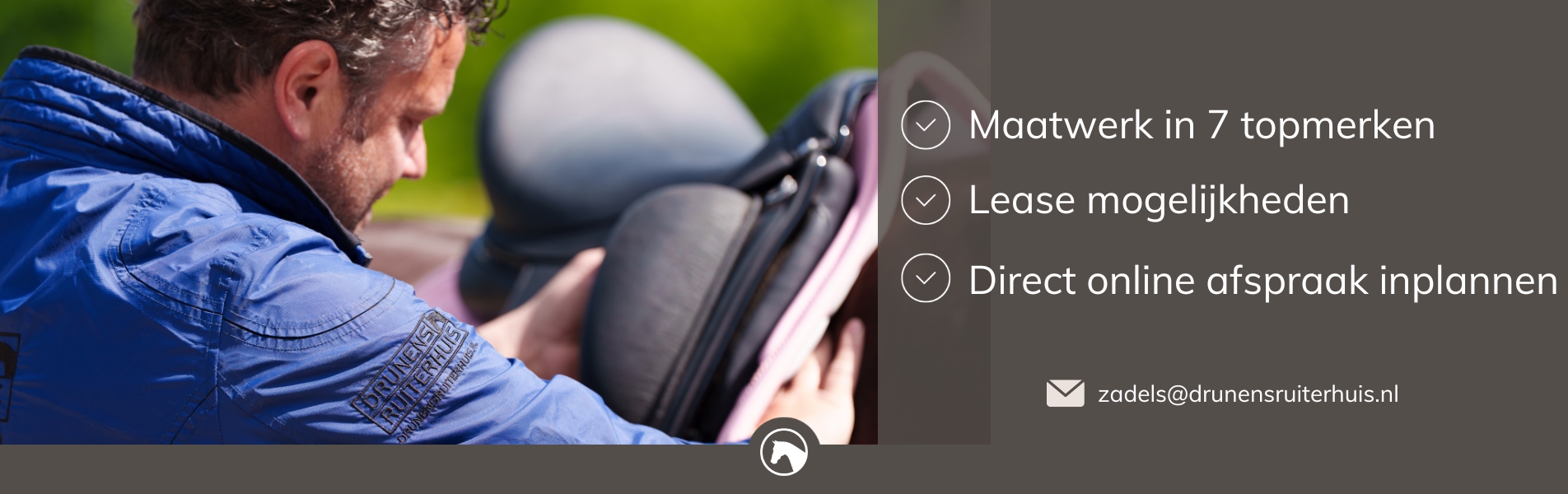 Liever gespreid betalen? Bij Drunens Ruiterhuis kun je ook een zadel leasen. Voor een vast maandbedrag rijd je met je eigen zadel — betaalbaar, betrouwbaar en direct volledig jouw eigendom. Meer informatie over zadel lease bij het Drunens Ruiterhuis lees je hier.